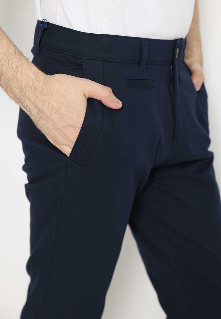 2 saku belakang dengan kancing. masing-masing 1 lajur