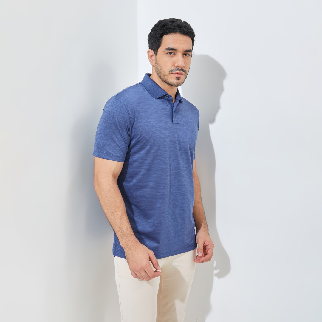 Knit shirt (polo) lengan pendek dengan desain tonal two color solid yang memberikan tampilan modern dan elegan