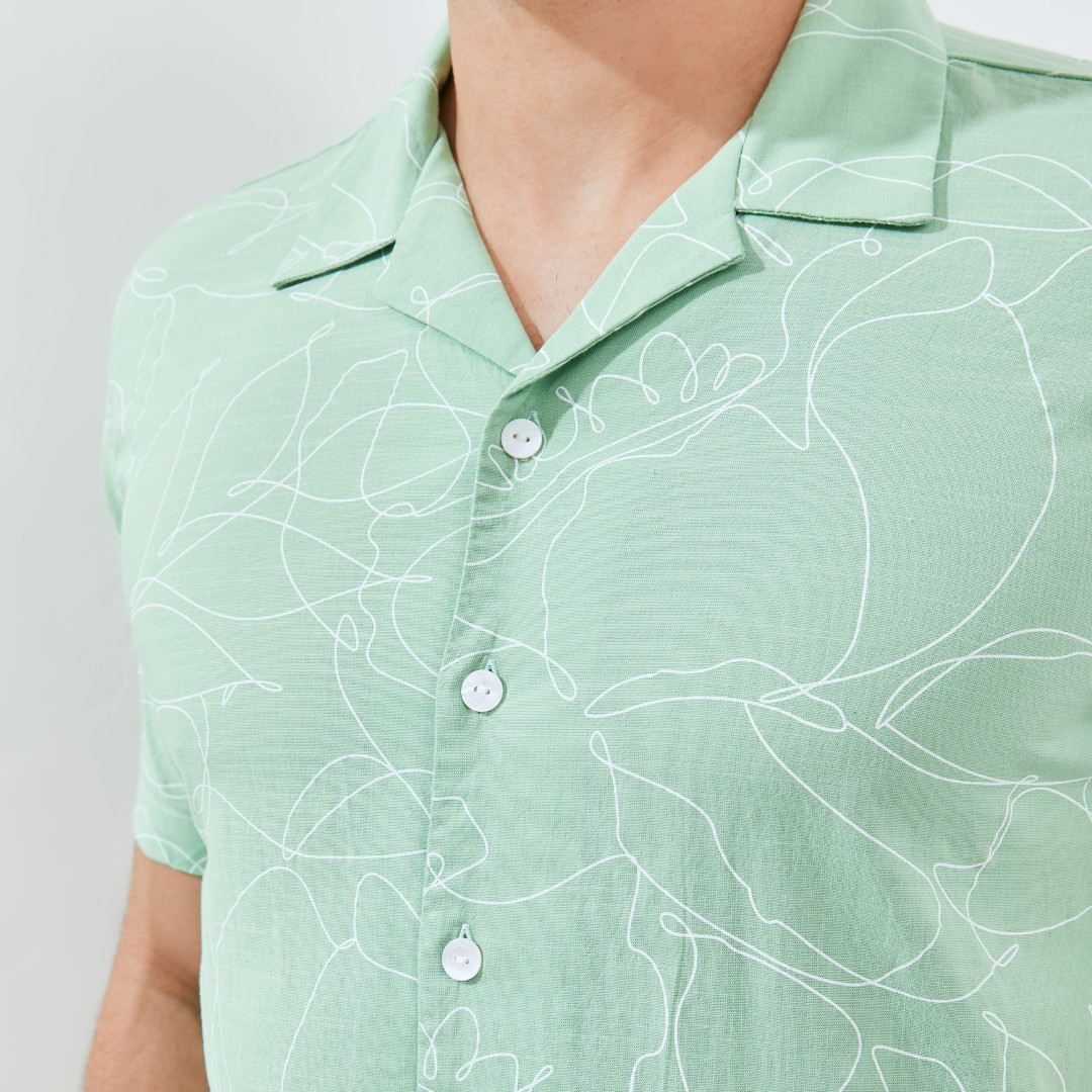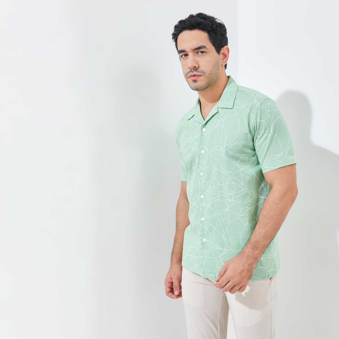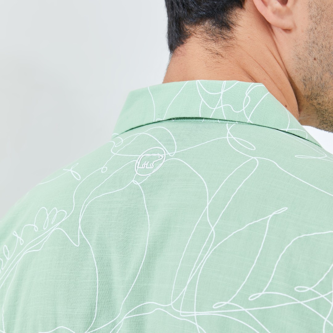 JACK NICKLAUS PREMIUM NIEUWE menghadirkan kemeja woven premium dengan desain open collar (Cuban collar) yang memberikan tampilan resort look modern dan sophisticated. Motif large floral lines menciptakan statement style yang bold namun tetap elegan.