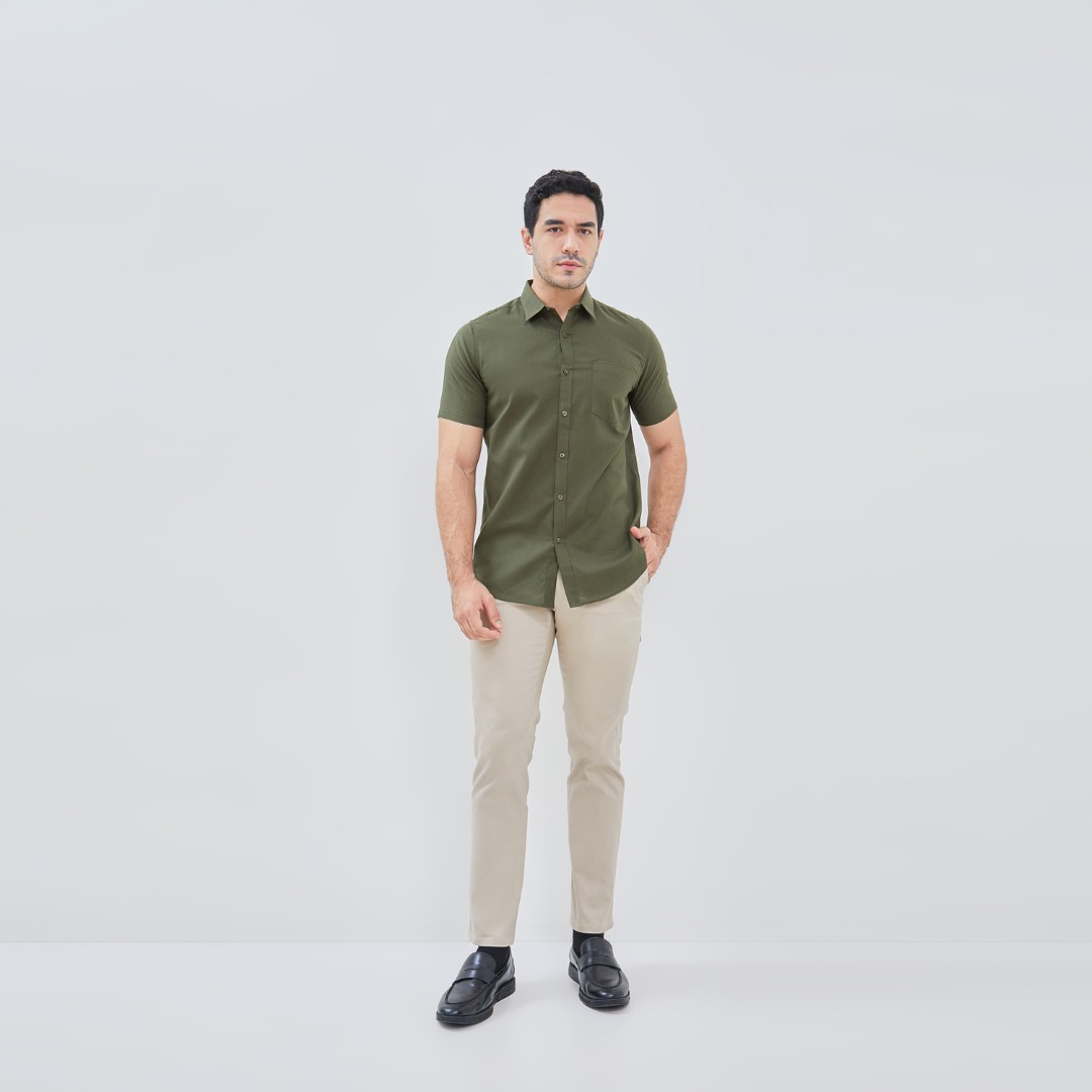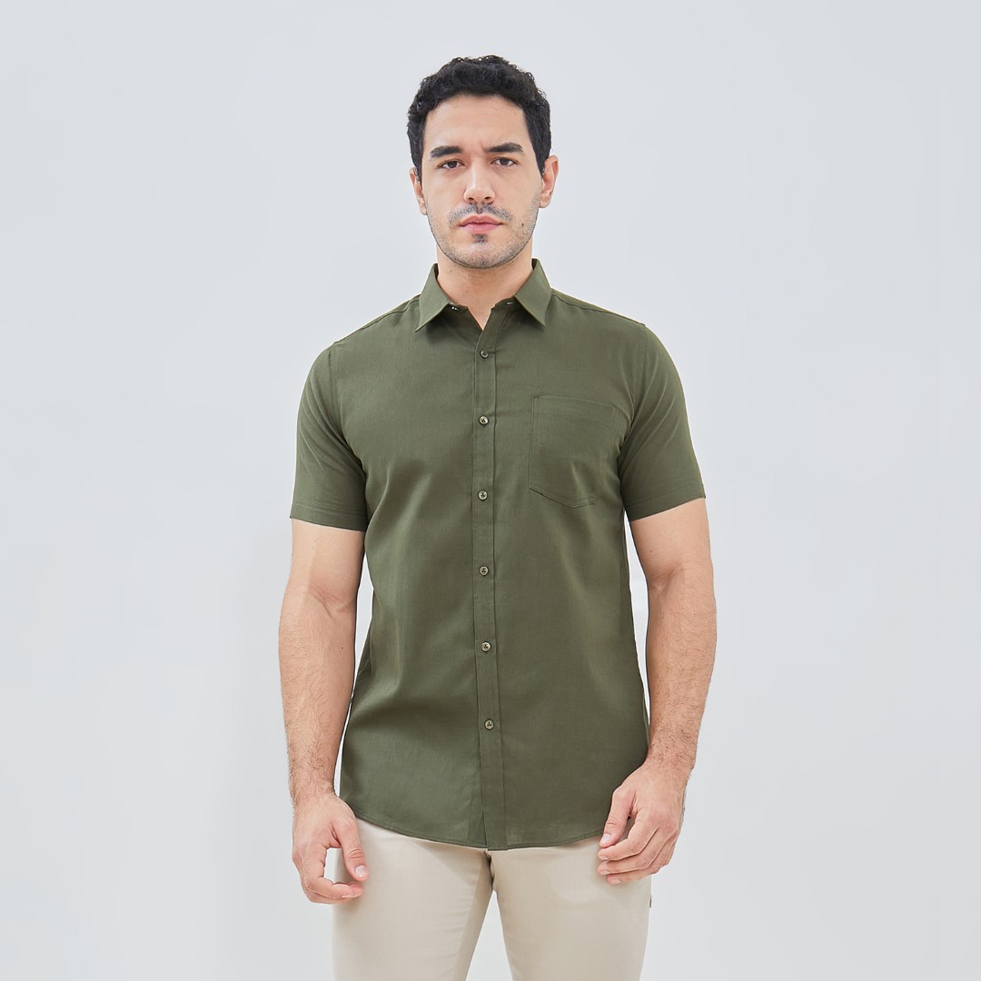 Kemeja lengan pendek dengan desain slim fit yang memberikan tampilan lebih modern dan rapi