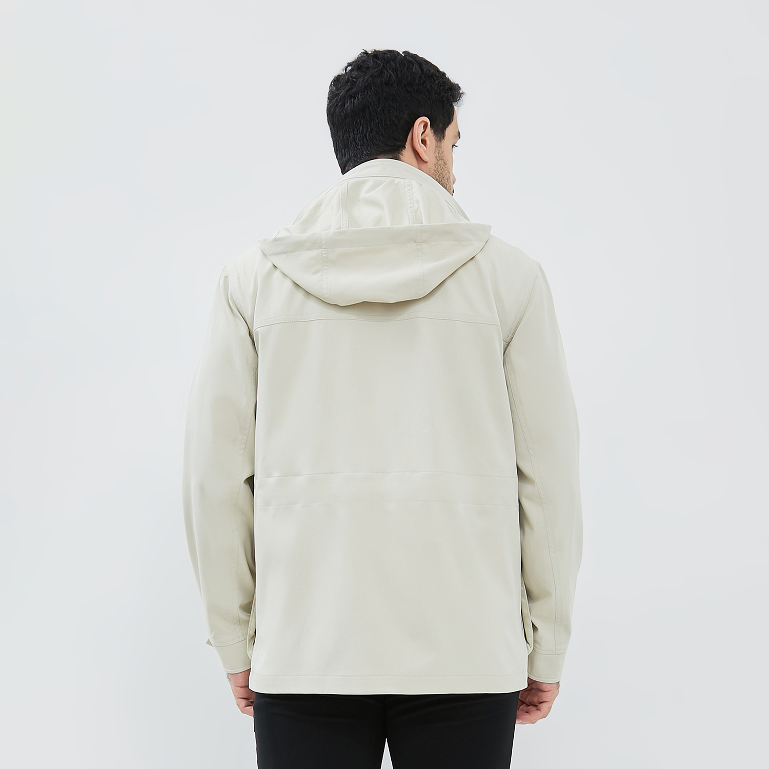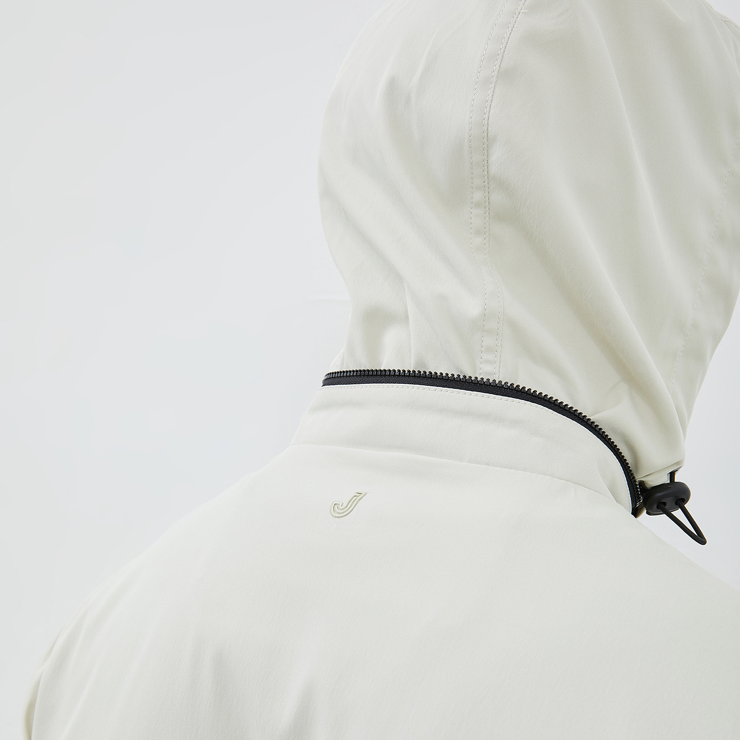 Kerah bagian belakang berfungsi sebagai tempat penyimpanan hoodie, memberikan tampilan yang clean sekaligus praktis