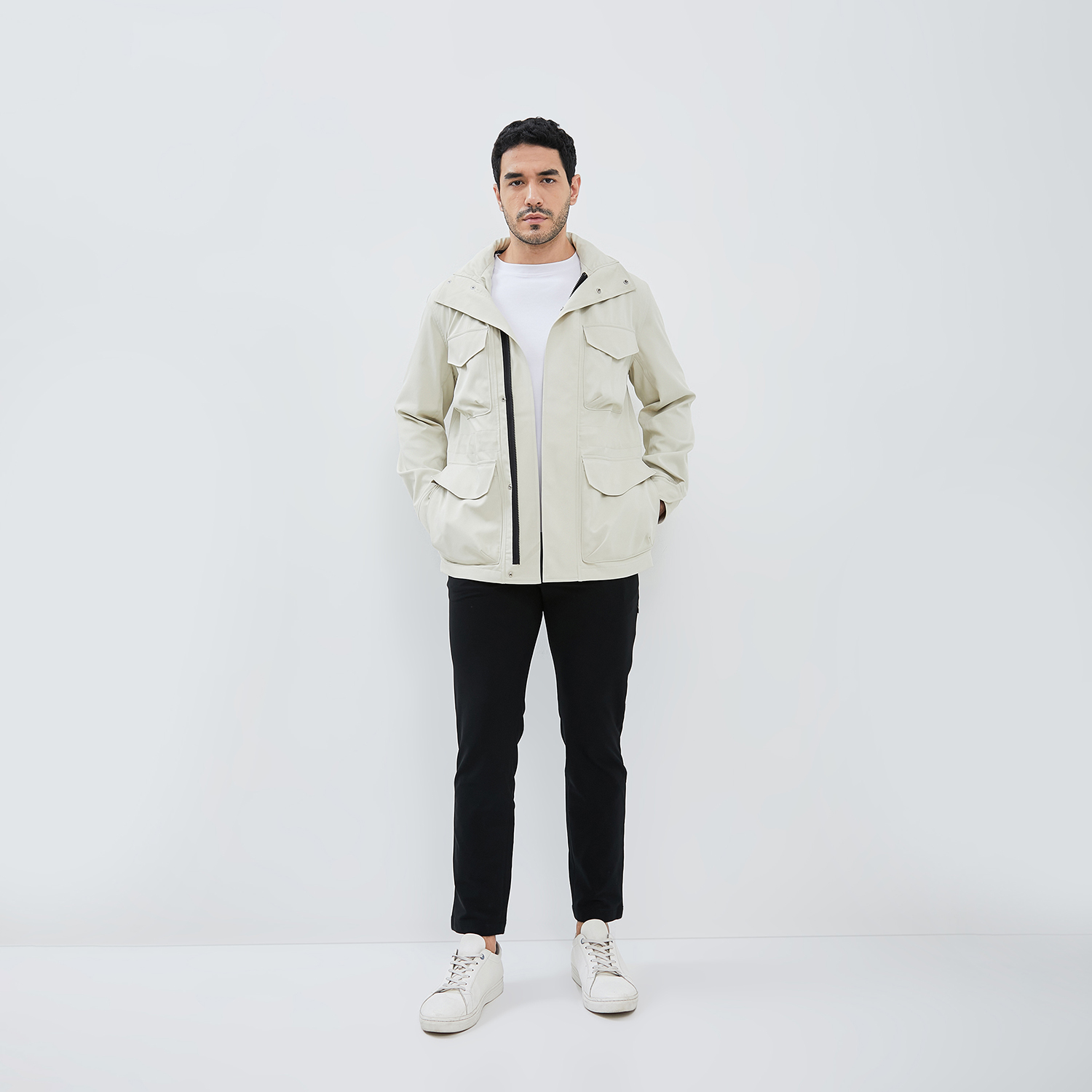 Jaket parka lengan panjang dengan desain utility style yang modern dan fungsional