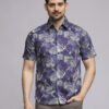 Kemeja Pria M2: Geopatch Ungu-Silver, Lengan Pendek – Gaya Modern yang Nyaman